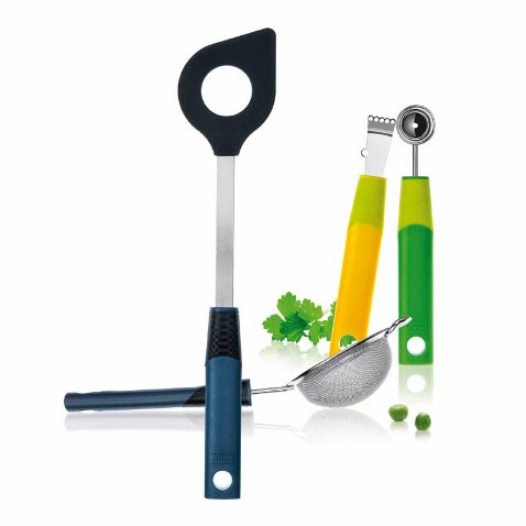 Y por último, especialmente pensada para las pequeñas manos de los grandes exploradores de La casa: KINDERKITCHEN de Kuhn Rikon. ¡NO son juguetes! ¡Son verdaderos utensilios de cocina para niños!